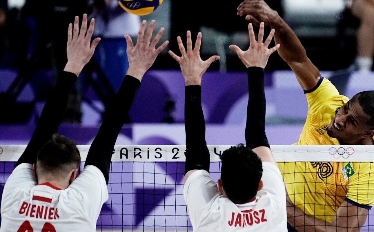 A seleção brasileira masculina de vôlei lutou como nunca, mas perdeu de virada para a Polônia, no tie-break, na manhã desta quarta-feira (31), na Olimpíada de Paris. Os adversários venceram por 3 sets a 2 (parciais de 25/22, 25/19, 25/19, 25/23 e 15/12). Apesar do segundo revés seguido na fase de grupos – na estreia foi superada pela Itália (3 a 1) – o Brasil segue em condições de avançar às quartas de final.