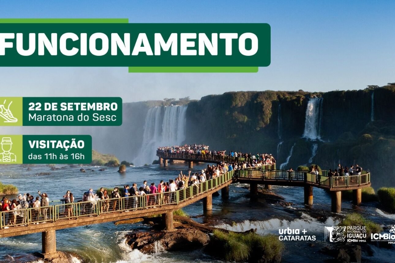 A tradicional Maratona Internacional de Foz do Iguaçu, marcada para o dia 22 de setembro, domingo, contará com a linha de chegada no Parque Nacional do Iguaçu. O trajeto da prova tem pontos estratégicos na cidade de Foz do Iguaçu, com início na Itaipu Binacional e encerramento no Parque Nacional do Iguaçu. Por conta dessa operação especial, o parque terá alteração no horário de visitação, exclusivamente neste dia 22 de setembro, abrindo para visitação das 11h às 16h.