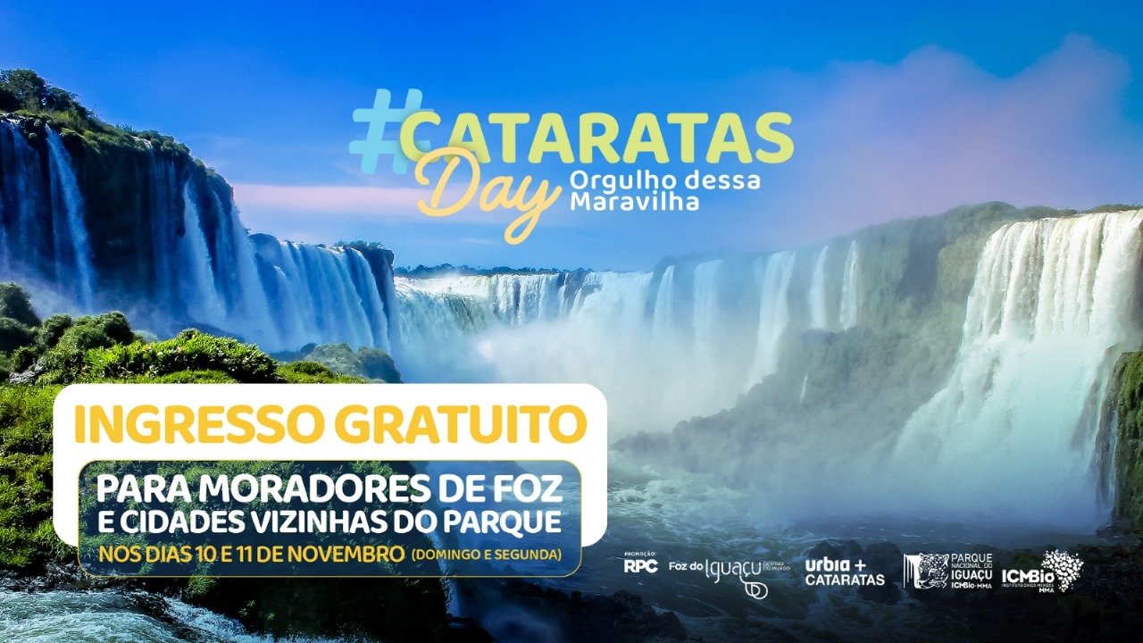 Realização – O Cataratas Day 2024 é realizado pelo Parque Nacional do Iguaçu, Urbia Cataratas, Secretaria Municipal de Turismo e Projetos Estratégicos de Foz do Iguaçu e Visit Iguassu, contando com promoção da RPC. A iniciativa visa a comemorar a data que marca a eleição das Cataratas do Iguaçu, na fronteira entre Brasil e Argentina, como uma das 7 Maravilhas Mundiais da Natureza.