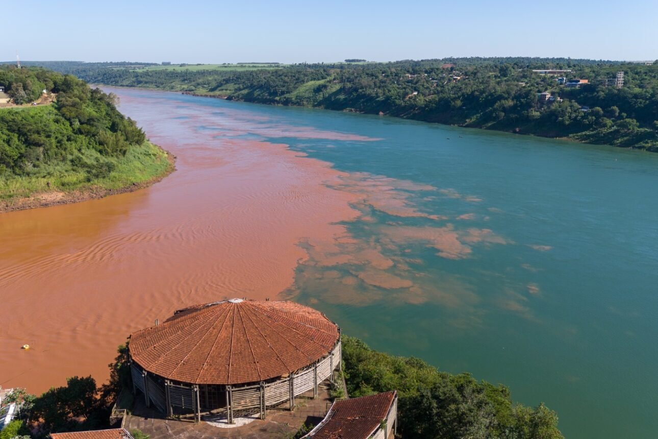 Contraste entre as tonalidades dos rios Iguaçu e Paraná chama a atenção