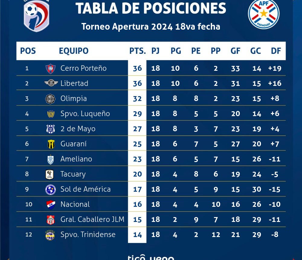Mas tarde a partir de las 20:00 horas, el otro líder del certamen, Cerro Porteño en la nueva olla chocará con Guaraní con la conducción de David Ojeda y Fernando López en el var.