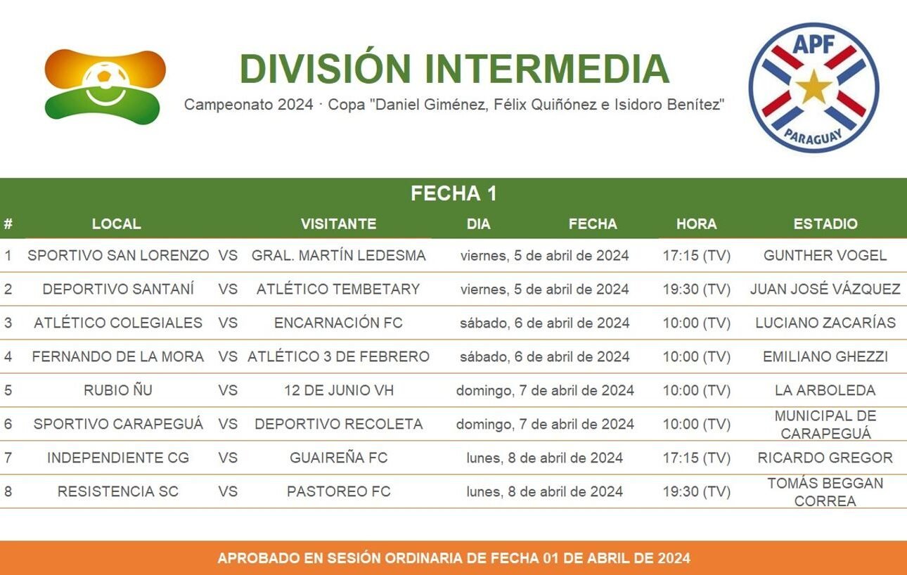 La inauguración será el domingo 7 a las 10:00 horas en el estadio Municipal de Carapeguá en el partido entre el local y Deportivo Recoleta.