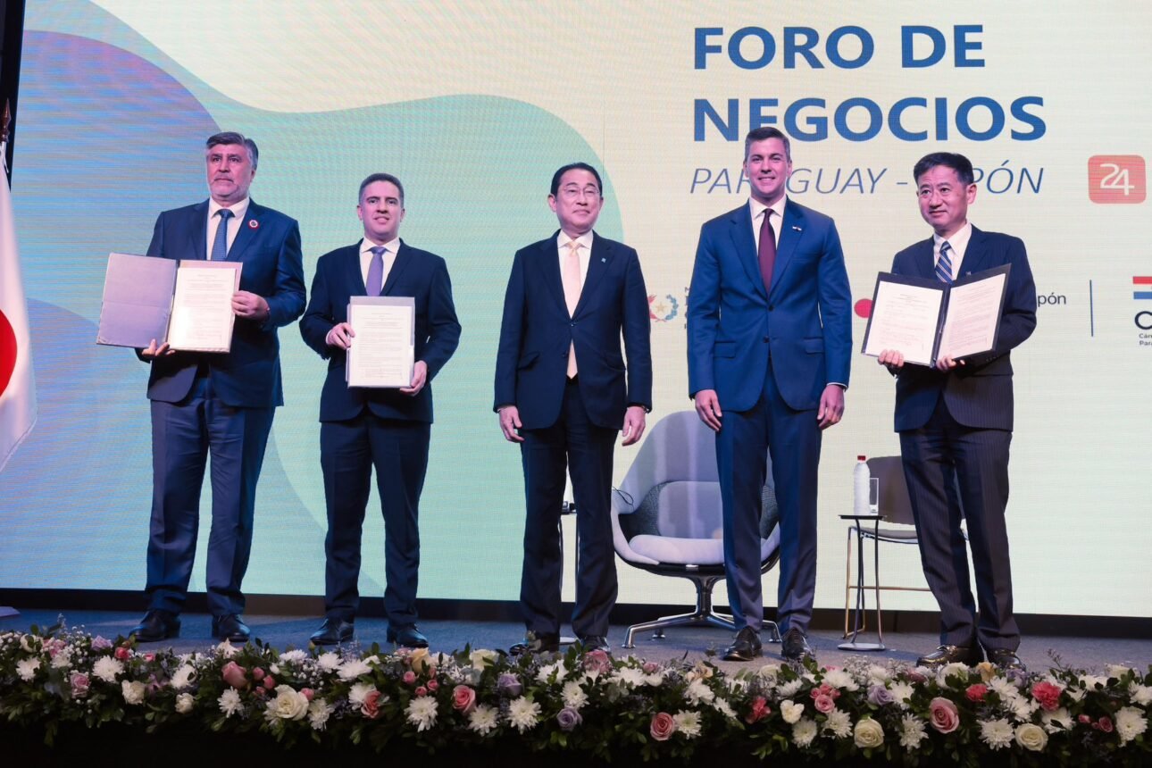 El acto tuvo lugar durante el foro de negocios desarrollado con motivo de la visita de los empresarios japoneses y del primer ministro Kishida. Participaron el ministro del MITIC, Gustavo Villate, y el presidente de la Conatel, Juan Carlos Duarte.