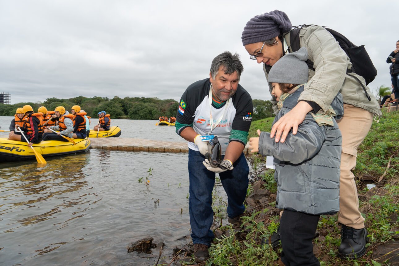 Liziane Kadine, engenheira agrícola da Divisão de Áreas Protegidas da Itaipu, levou a família para participar da soltura de peixes e integrou uma das equipes de rafting. Para ela, o evento mostra na prática a responsabilidade social e ambiental que está na missão da Itaipu. “Une a importância do canal como um corredor de biodiversidade, que permite o processo migratório dos peixes, com uma prática esportiva para os empregados se divertirem”, disse. “E tudo isso com o apoio da equipe do projeto Meninos do Lago, que faz um belíssimo trabalho social”.