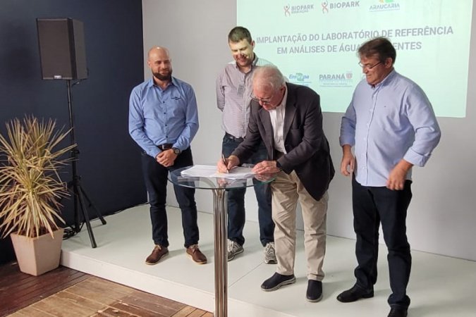 A Fundação Araucária e o Biopark – Parque Tecnológico em Toledo assinaram nesta quarta-feira (7) durante o Show Rural, em Cascavel, um convênio para implantar um laboratório de referência em análise de água e efluentes para atendimento das necessidades do setor agroindustrial no Oeste do Paraná. O laboratório funcionará na Unidade de Pesquisa da Embrapa localizada no Biopark e receberá um investimento de R$ 1 milhão da Fundação Araucária.
