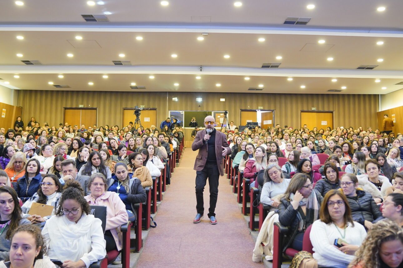 Centenas de docentes da rede municipal de ensino da Região Metropolitana de Curitiba acompanharam nesta terça-feira (28), em Pinhais, a primeira de uma série de palestras que o escritor e influenciador digital Fabrício Carpinejar está ministrando a convite da Itaipu Binacional e do Parque Tecnológico Itaipu (PTI).