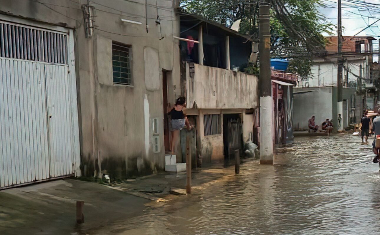 As chuvas se intensificaram neste fim de semana, quando a água acumulada tornou intransitável diversas ruas da região, e mais uma vez a comunidade se articula para garantir o básico, como alimentação.