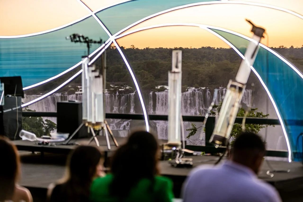 Realizado diante do maior conjunto de quedas-d’água do planeta, o espetáculo apresenta a orquestra paraguaia H2O Sonidos de la Tierra, reconhecida mundialmente por produzir sons a partir de instrumentos que têm a água como base sonora.