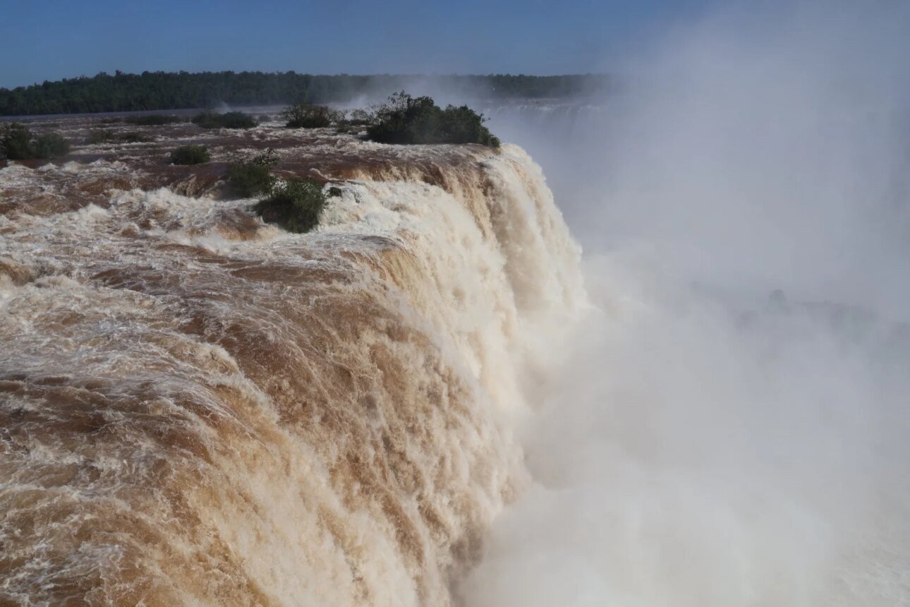 As Cataratas do Iguaçu registraram, nesta segunda-feira (13 de outubro), uma vazão impressionante de 6,7 milhões de litros por segundo, quatro vezes acima da média histórica , que é de 1,5 milhão de litros por segundo. O aumento expressivo do volume é resultado das chuvas intensas que atingiram a região da bacia do Rio Iguaçu ao longo do último fim de semana.