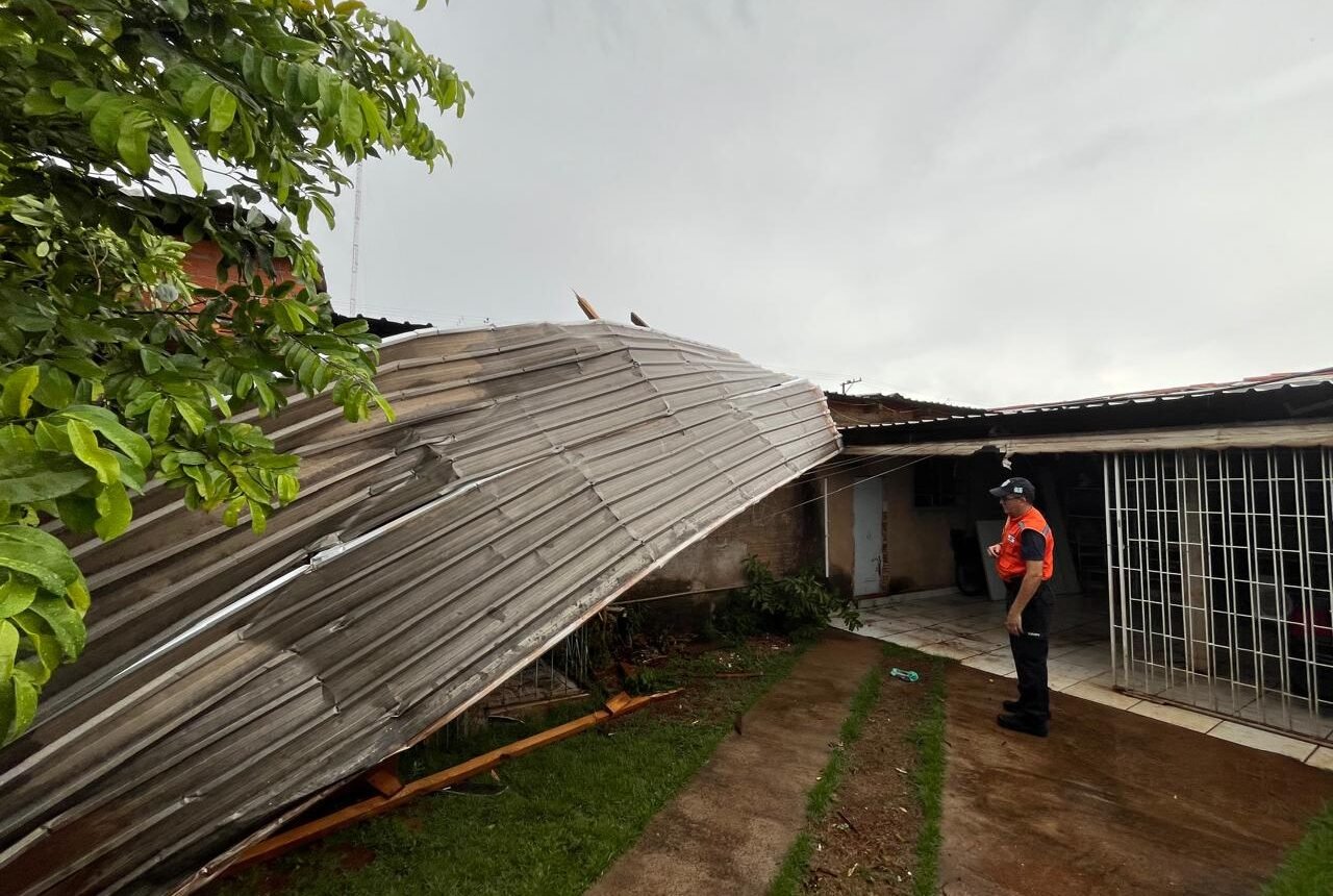 A Defesa Civil de Foz do Iguaçu atendeu, na tarde desta quinta-feira (30), duas situações de danos em telhados, uma em imóvel comercial, outra em residências e uma de queda de galhos de árvore em telhado causadas pelo temporal que atingiu, principalmente, a região Sul da cidade, mais especificamente o bairro Porto Meira.