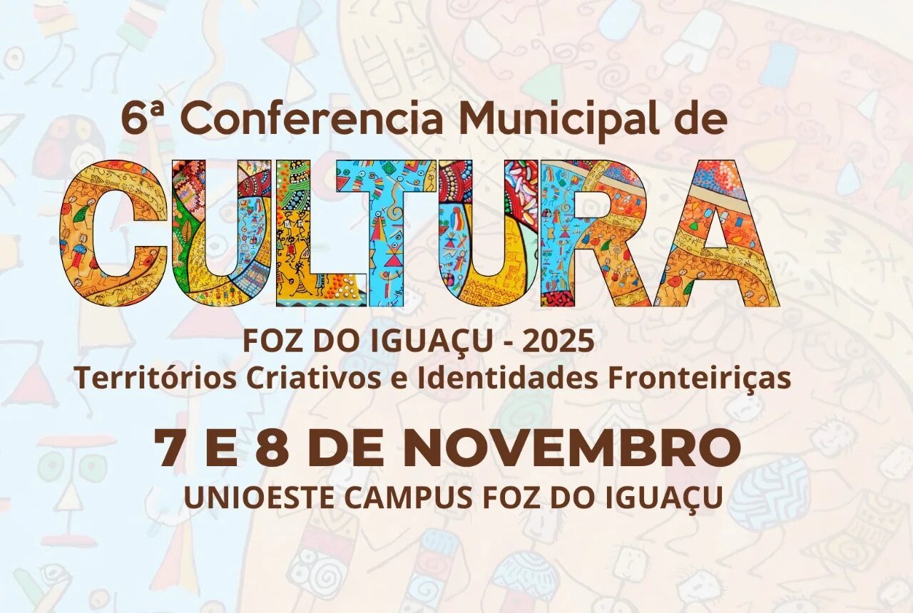 A Conferência será no miniauditório da Unioeste – Campus Foz do Iguaçu, com o tema “Territórios Criativos e Identidades Fronteiriças”. Convocada e organizada pelo Conselho Municipal de Políticas Culturais (CMPC), com apoio da Prefeitura de Foz do Iguaçu e da Fundação Cultural, a conferência tem caráter deliberativo e participativo, reunindo artistas, produtores, gestores, coletivos e a comunidade para debater e construir propostas que fortaleçam as políticas culturais do município.