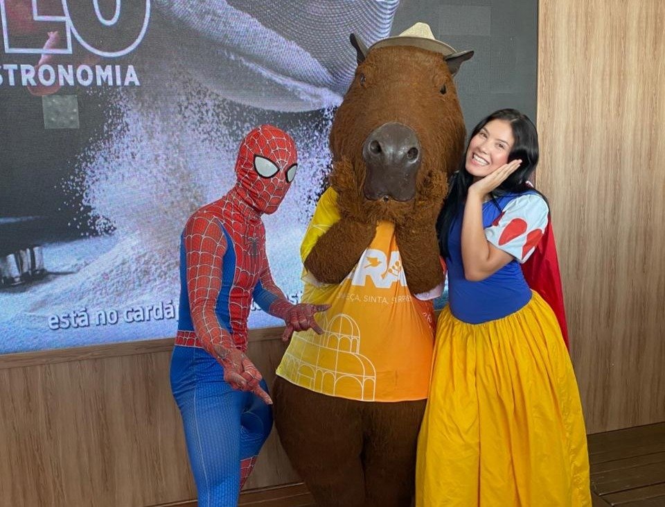 O Homem-Aranha e a princesa Branca-Neve, mascotes do parque iguaçuense, conversaram, tiraram foto e convidaram os expositores e visitantes para conhecer o Museu de Cera, Vale dos Dinossauros, Maravilhas do Mundo, Bar de Gelo, Dreams Motor Show e Eco Park Foz para os expositores e visitantes.