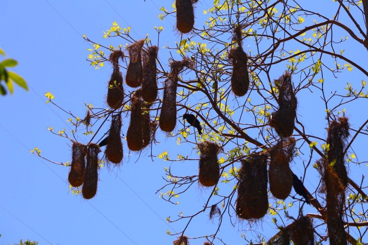 Fauna em movimento — A primavera também é marcada pelo aumento da atividade dos animais. É tempo de acasalamento e reprodução, especialmente das aves. Um exemplo que pode ser facilmente observado no parque é o guaxe (Cacicus haemorrhous). Essa espécie constrói ninhos em forma de bolsa pendurados em galhos.