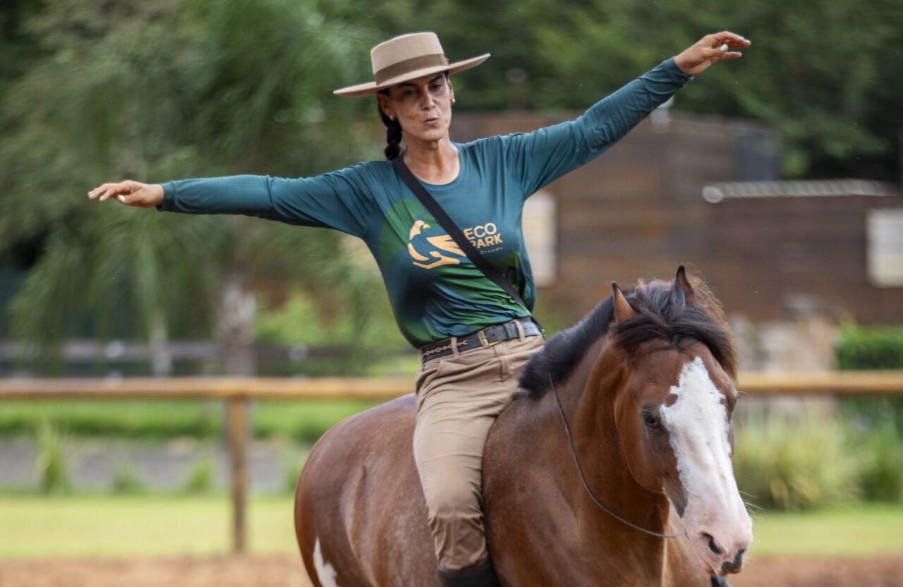 Logo na entrada tem o parquinho para as crianças, depois os visitantes poderão assistir a um treino em liberdade com o cavalo, onde se comunica de forma livre com a treinadora, sem o uso de sela e freio, demonstrando conexão, confiança, parceria e respeito entre humano e animal; visita e interação com os animais da Fazendinha, imersão no Aviário das Aves resgatadas de maus-tratos e na Floresta dos Primatas. Para completar, apresentação das Aves de Rapina.