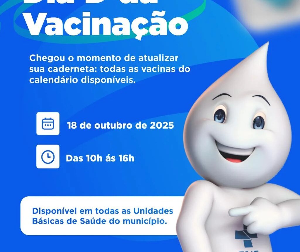 O “Dia D” faz parte da campanha de multivacinação, que iniciou no dia 06 de outubro e segue até o dia 31 de outubro.