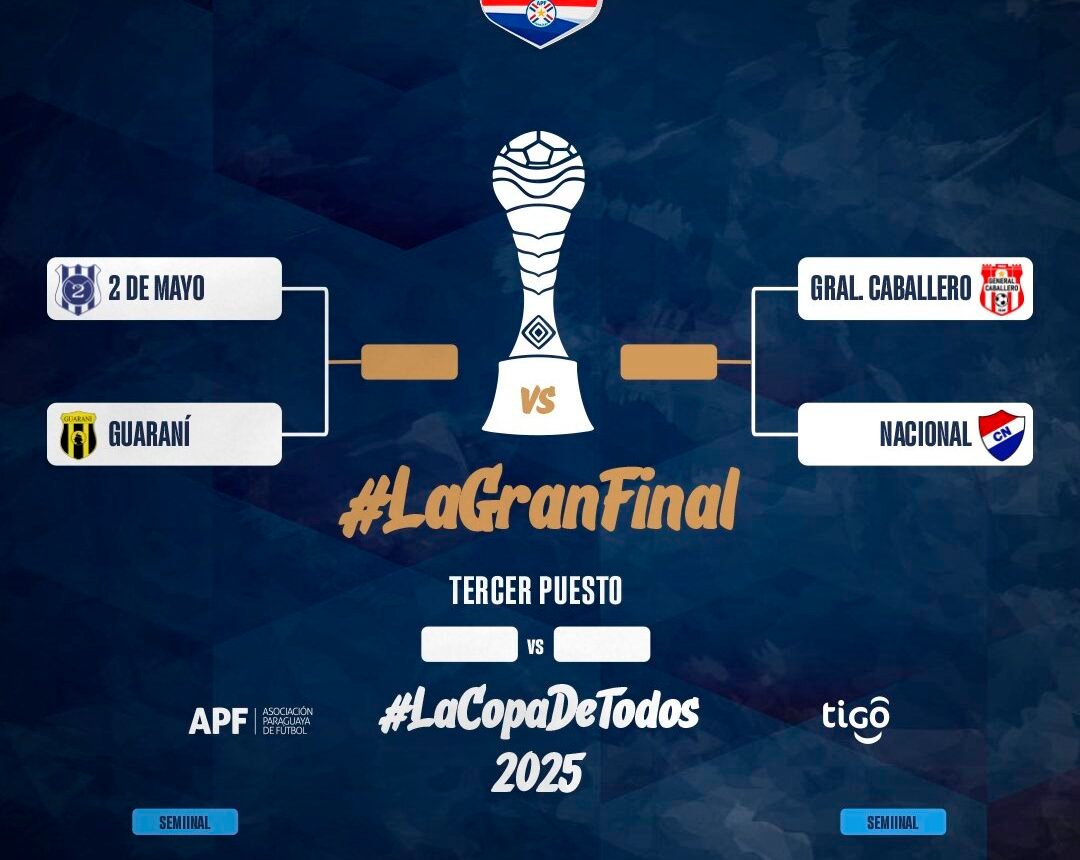 Asunción, Agencia IP.-Este miércoles se disputarán los dos partidos de semifinales de la denominada copa de todos de la Asociación Paraguaya de fútbol 2025.