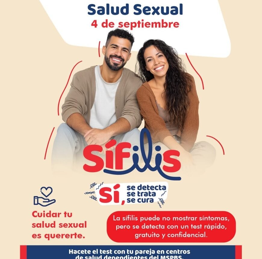 Como parte de una política pública de salud sexual integral, el Ministerio de Salud Pública, a través del Pronasida, pone a disposición de la población pruebas de sífilis gratuitas disponibles en todos los servicios de salud pública del país; así como el diagnóstico y tratamiento precoces que salvan vidas, protegen familias y contribuyen al bienestar comunitario.