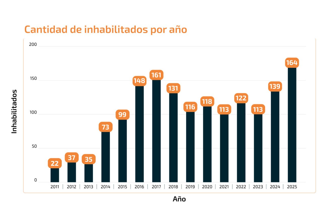 • En el año 2024, las inhabilitaciones incrementaron en un 23 % comparado con el año previo.