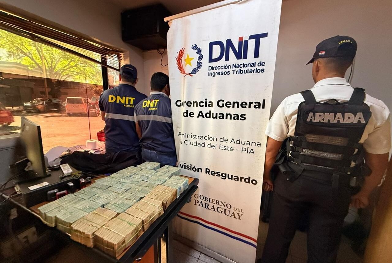 Asunción, Agencia IP.– La Dirección Nacional de Ingresos Tributarios (DNIT), a través de su Gerencia General de Aduanas y la Administración de Aduanas del Puente Internacional de la Amistad (PIA), realizó una importante incautación de aproximadamente 1.600.000 reales (equivalentes a unos 300.000 dólares) ocultos en un vehículo con matrícula paraguaya.