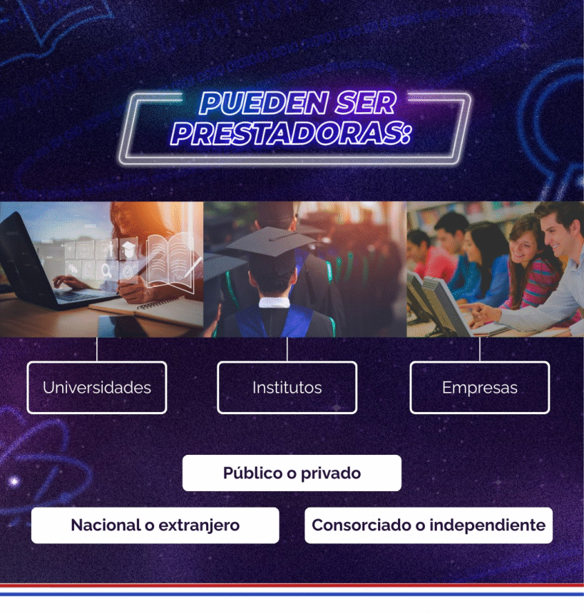 Podrán participar universidades, institutos y empresas del sector público o privado, tanto nacionales como extranjeras, interesadas en formar parte del programa como entidades formadoras en áreas vinculadas a la tecnología y la innovación.