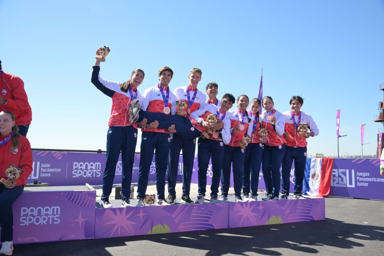-Bronce: Fiorela Rodríguez, Agustina López, Nicole Martínez y Lucia Martínez en remo 4XW.