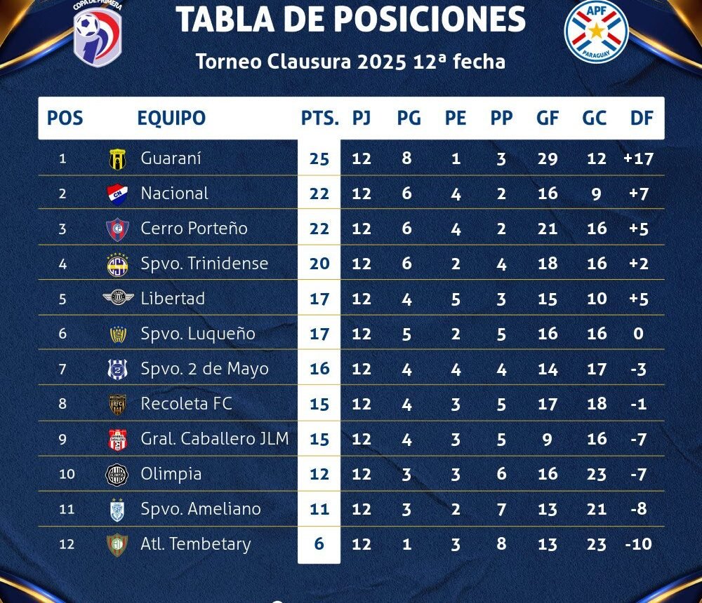 El domingo cierran la fecha, Guaraní con Nacional en la arboleda a las 16:30 horas y Libertad con 2 de mayo en la huerta a las 19:00 horas.