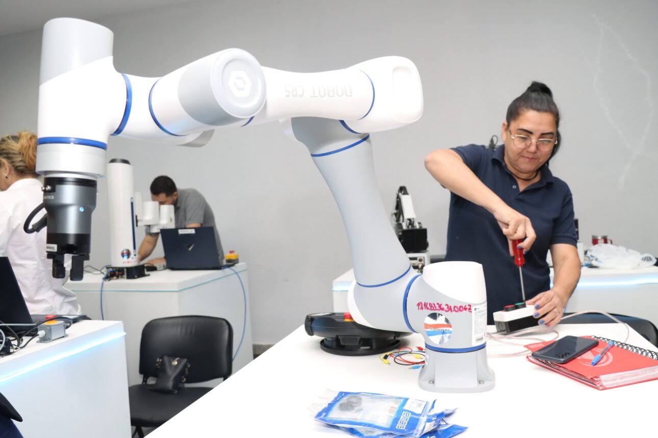 Durante las jornadas de formación, los participantes desarrollaron conocimientos teóricos y prácticos relacionados con la programación, integración y operación de brazos robóticos utilizados en entornos productivos, tecnologías cada vez más presentes en las industrias modernas.