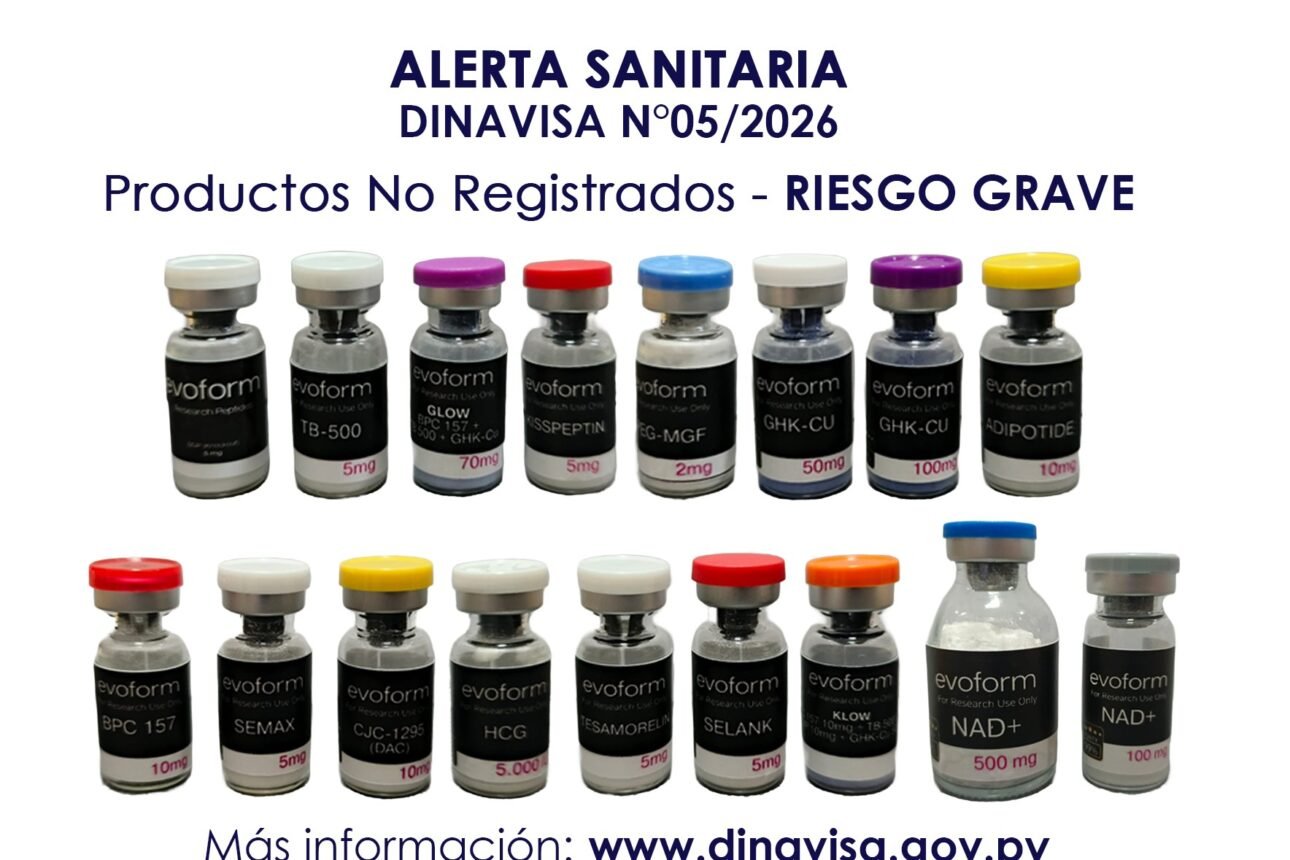 Asunción, Agencia IP.- La Dirección Nacional de Vigilancia Sanitaria (Dinavisa) informa a la ciudadanía que procedió al decomiso de 18 productos, tras la detección de una comercialización no autorizada de productos que declaran o presumen contener péptidos (moléculas compuestas por la unión de dos o más aminoácidos), en el territorio nacional, en la ciudad de Pedro Juan Caballero, departamento de Amambay (zona fronteriza).