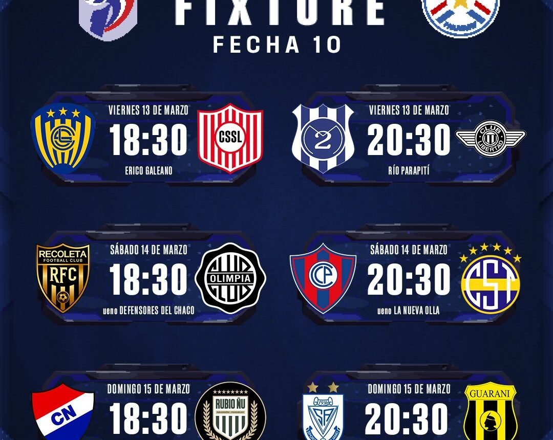La fecha 10 del torneo iniciará este viernes en el estadio Erico Galeano de Capiatá con Luqueño, equipo al que le urge la victoria, que enfrentará a partir de las 18:30 a San Lorenzo que apenas ha sumado 2 puntos en 9 partidos.