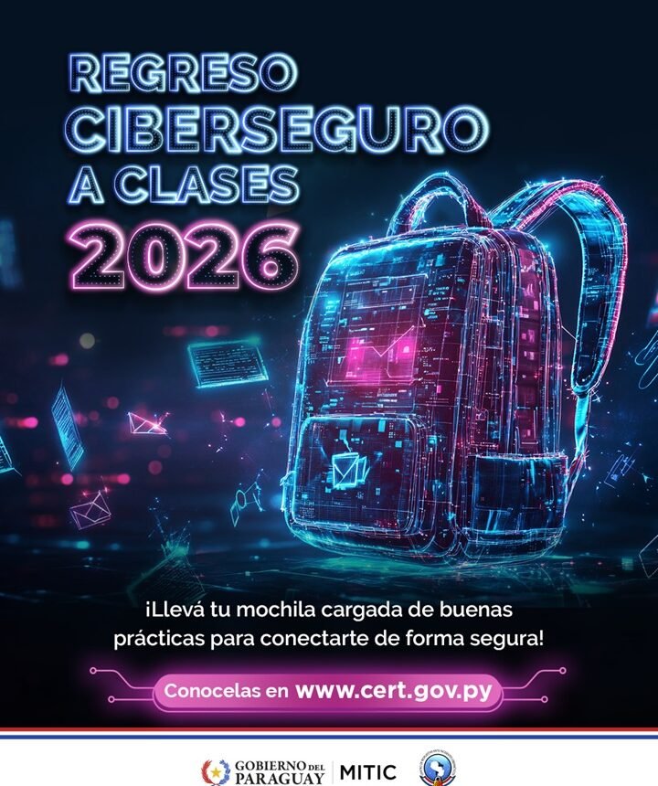 Con la consigna “Llevá tu mochila cargada de buenas prácticas para conectarte de forma segura”, el Centro de Respuestas ante Incidentes Cibernéticos (CERT-Py) propone un material sencillo, dinámico y fácil de comprender, pensado para acompañar el regreso a clases en el entorno digital.