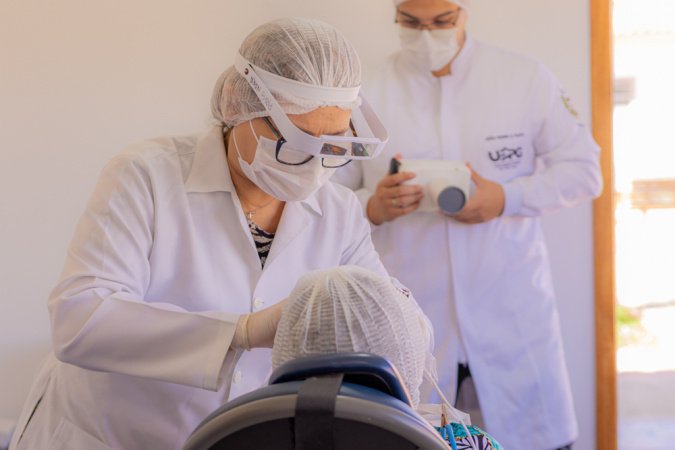 A aluna do Doutorado em Odontologia Tatiane Oliveira participa do projeto desde o início. Como profissional bolsista na área de odontologia, ela presta atendimento odontológico e também realiza outras atividades, juntamente com demais profissionais.