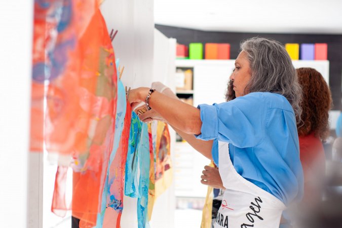 As edições especiais do Arte para Maiores são uma oportunidade de aprofundar técnicas e linguagens artísticas, como a marmorização, na edição deste mês. Nessa atividade, os participantes vão explorar diferentes combinações de cores, formas e texturas, transferindo as composições para superfícies como papel e tecido.