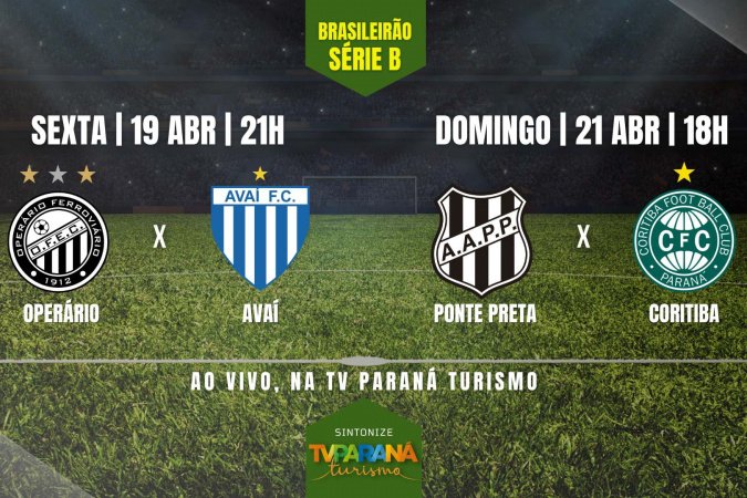 A TV Paraná Turismo, em parceria com a TV Brasil, transmite as estreias dos times paranaenses na Série B do Campeonato Brasileiro. Na sexta-feira (19), às 21h, o Operário joga contra o Avaí no estádio Germano Krüger, em Ponta Grossa. No domingo (21), às 18h, o Coritiba entra em campo contra a Ponte Preta, em Campinas.