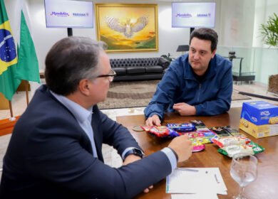 O governador Carlos Massa Ratinho Junior recebeu nesta quinta-feira (10), no Palácio Iguaçu, o presidente da Mondelēz no Brasil, Liel…