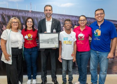 Artista da Apae entrega desenho da barragem da Itaipu a Enio Verri
