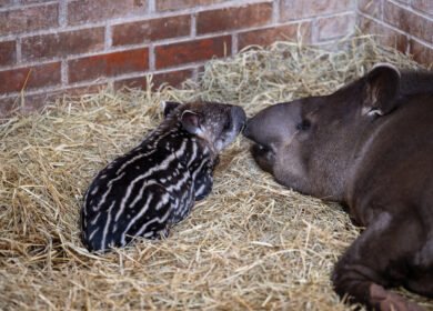 Filhote de anta que nasceu esta semana no Refúgio Bela Vista é fêmea